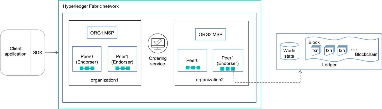 Một giải pháp blockchain hoạt động bằng cách sử dụng mạng Hyperledger Fabric làm phụ trợ, tương tác với giao diện người dùng của ứng dụng. Để tạo điều kiện giao tiếp giữa hai bên, có sẵn các bộ công cụ phát triển phần mềm (SDK) như Node.js và Java. Các SDK này cho phép người dùng thực thi chaincode, thực hiện giao dịch và giám sát các sự kiện.